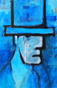 A painting based on Ambrose Small, ghost of The Grand Theatre. Acrylic on canvas, 2008.