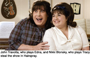 What's most remarkable is that while much of the attention might inexorably be focused on John Travolta (who gives a somewhat “daring” performance), it is Nikki Blonsky (a newcomer) who steals every scene she's in. Taking to the screen like a seasoned pro, she exudes charisma and is absolutely convincing in this musical milieu.
