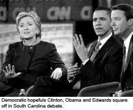 The next big event on the schedule is the South Carolina Democratic Primary on January 26. On Martin Luther King Day there was a debate in South Carolina between the three Democratic front-runners: Hilary Clinton, John Edwards and Barack Obama. The economy came up regularly during the debate - it's the economy, stupid - of course it came up.