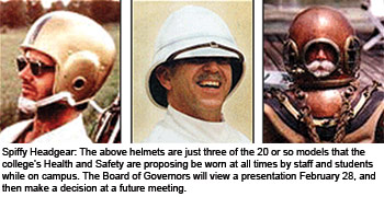 Fanshawe College's Health and Safety Committee is recommending that all staff and students wear safety helmets while on campus. The recommendation comes after an exhaustive two-year study on head injuries on campus.