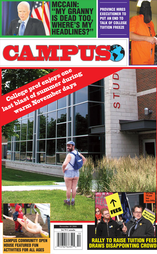 Campus World Exclusive Distorter November 10, 2008 Disclaimer: This page is for purely entertainment purposes and is fictitious. Proudly campus global watching since 2008. Previous Article Students descend on Queen's Park to fight fees Next Article Annual Report – 2007-2008 Volume XV
