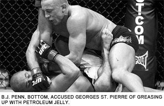 If you are unfamiliar with the situation, in the BJ/GSP II fight Penn's corner and the athletic commission said that GSP and his corner were illegally using the petroleum jelly they are supplied with.