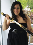Her specific style of karate is isshin-ryu, which is Japanese. It focuses on closed and open techniques — slapping, chopping, hooks and kicks. She's also been trained in weapons like the sai — a three-pronged dagger and a bo — a six foot long staff.
