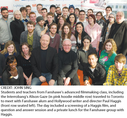 A film screening, a question and answer session and a private lunch with Oscar winner Paul Haggis isn't exactly an everyday occurrence for Fanshawe's advanced filmmaking class. On February 10 the advanced filmmaking class, along with a handful of teachers and other school representatives, boarded a bus bound for Toronto. Their destination was the TIFF Bell Lightbox theatre. The itinerary for the day included a screening of In The Valley of Elah, followed by Q and A with Haggis and then a private lunch with Haggis. After a slightly late arrival at the beautiful Bell Lightbox, which Haggis promptly called out during the Q and A, the screening began.